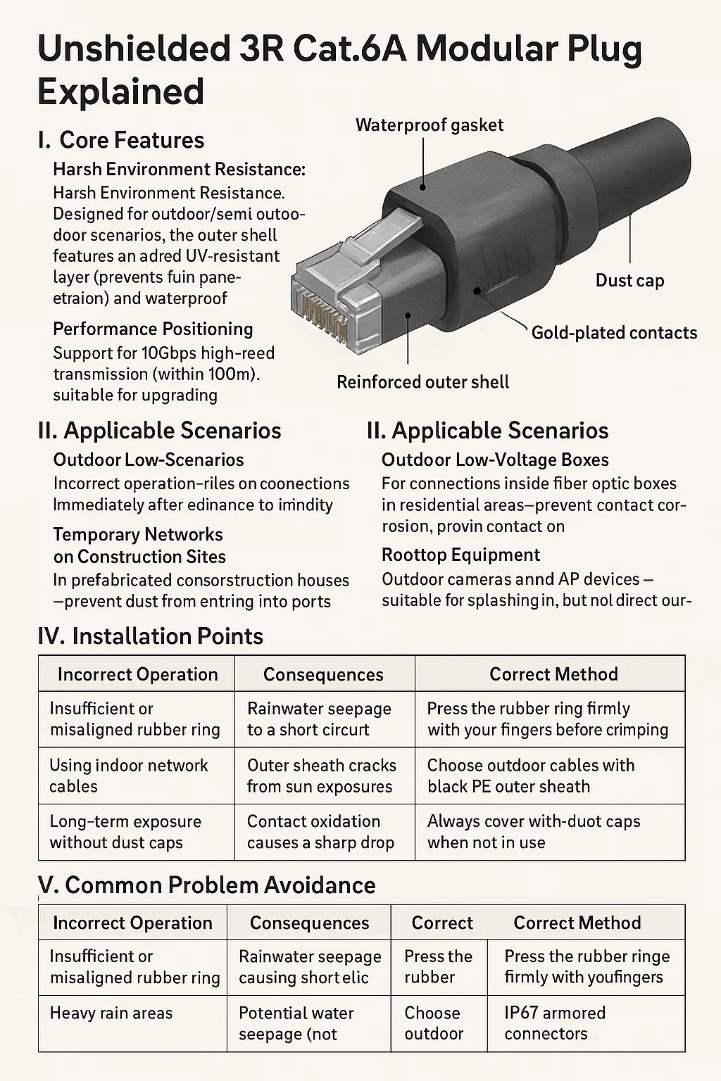 シールドなし 3R Cat.6A モジュラープラグ 説明済み