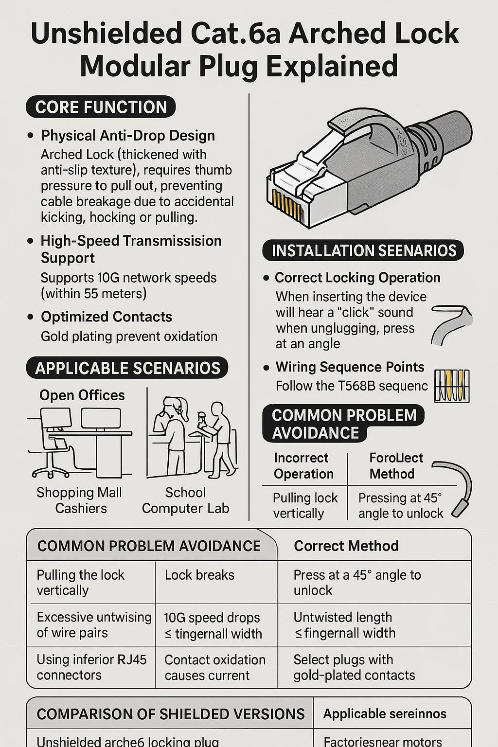 シールドなし Cat.6a アーチド ロック モジュラー プラグ 説明済み