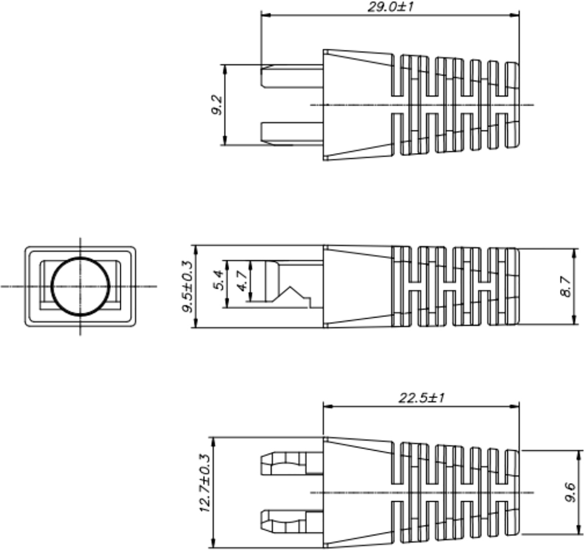 このストレイン リリーフは 2 つの部品からなり、Cat.6A / Cat.6 / Cat.5e パッチ コード用に設計されています。当社は柔軟なリードタイムを備えた完全な生産ラインを備えています。